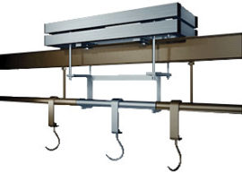 - Struttura in tubolari di acciaio INOX AISI304, completa di accessori per il fissaggio alla trave e barre filettate per il fissaggio al tratto di guidovia del cliente.